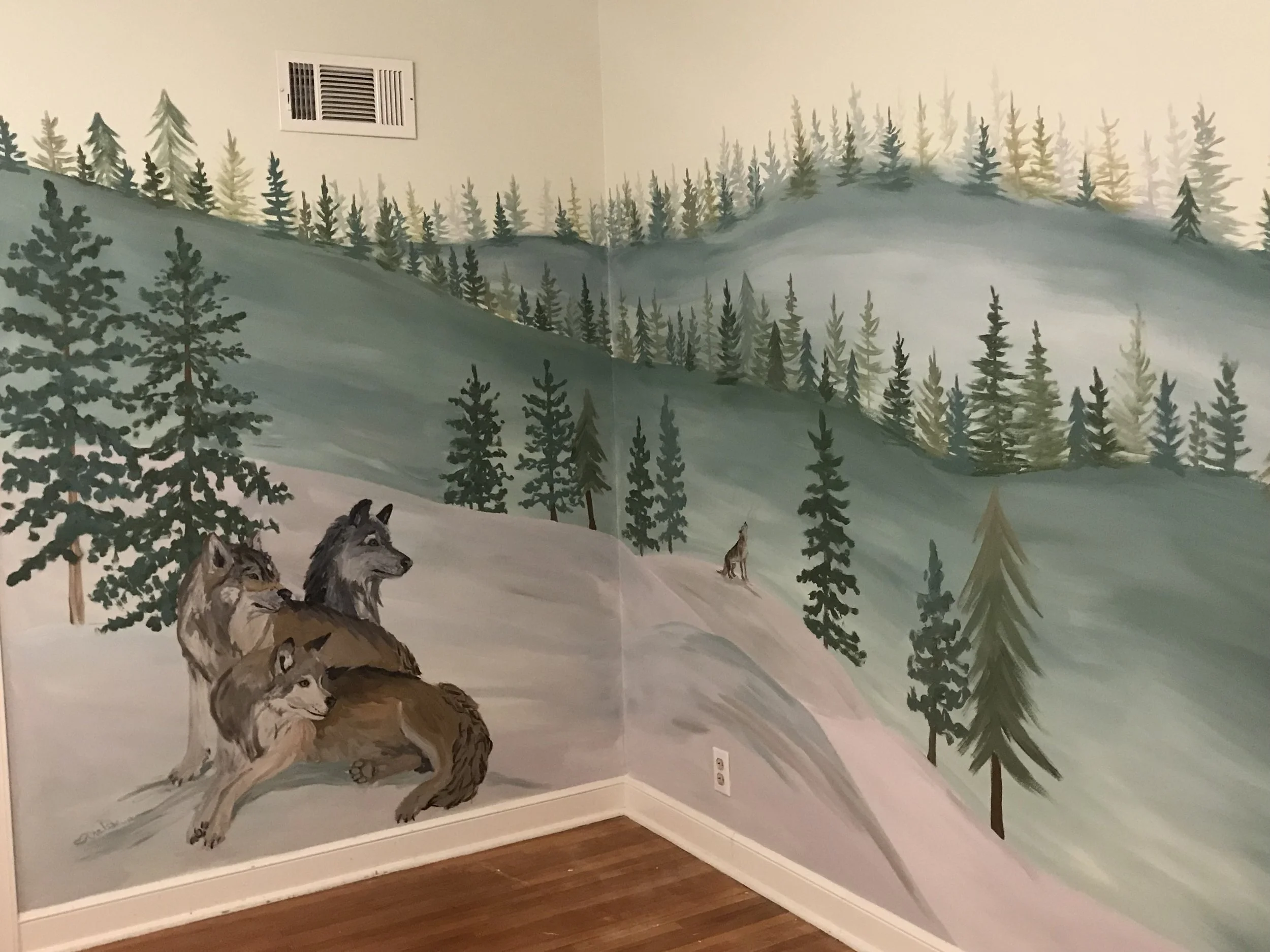 Sketches and mood board - I will provide sketches and a mood board and color board to communicate best with you the composition and style for your mural. I will tweak the sketch if things need to be changed before we begin, or make notes on what to change when the composition is transferred onto your walls.